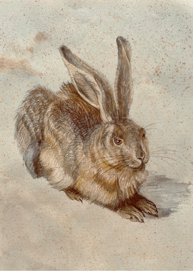 開講日 受講料 8,000円(材料費込み) デューラーの水彩スケッチ『野うさぎ』です。