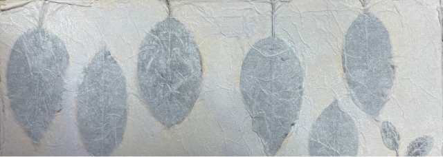 葉っぱをそのまま使って、デザイン(配置)して、素敵な色に丁寧に装飾して、あなただけの1枚に。