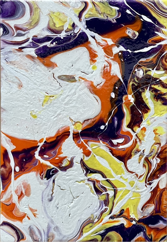 開講日 受講料 10,000円(材料費込み) 絵の具の流動性を使い、偶然的に発生する模様で表現する人気の「フルイドアート」講座です。